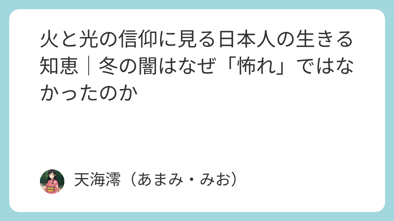 火と光の信仰に見る日本人の生きる知恵|冬の闇はなぜ「怖れ」ではなかったのか