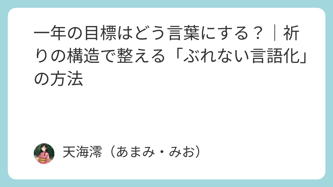 目標が散らばってしまうのは、気持ちが弱いからでも、努力が足りないからでもありません。多くの場合、言葉が少しだけ自分から離れているだけです。祝詞的な言語化は、そのずれを無理に正そうとせず、言葉を静かな位置に戻すための方法だと感じています。