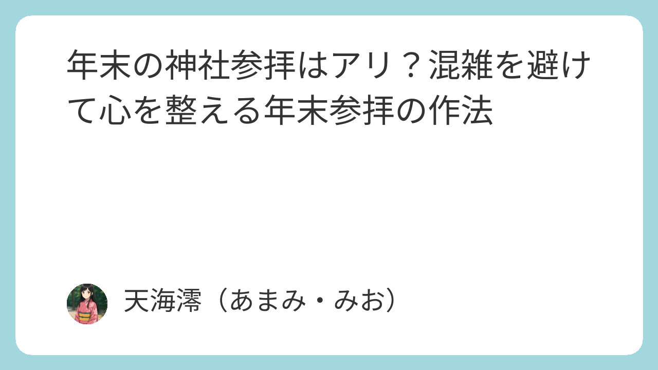 この記事では、「年末に神社へ行ってもいいの?」という素朴な疑問に答えながら、