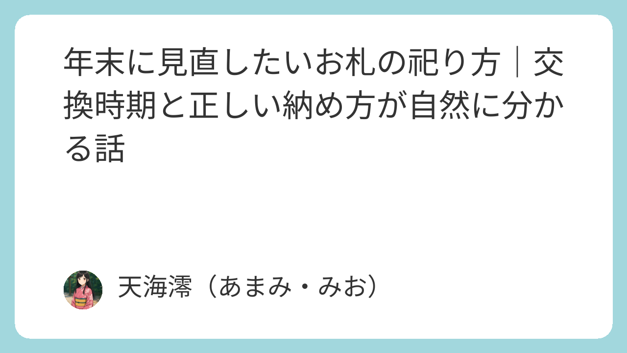 私はこの一言があるだけで、手放すときの心がやわらぐのを感じます。お札の交換は、信心の強さを競うものではありません。感謝で終えて、感謝で始めるための区切りです。古いお札を丁寧に納められたら、それはもう、新しい年を迎える準備が静かに整い始めている証です。