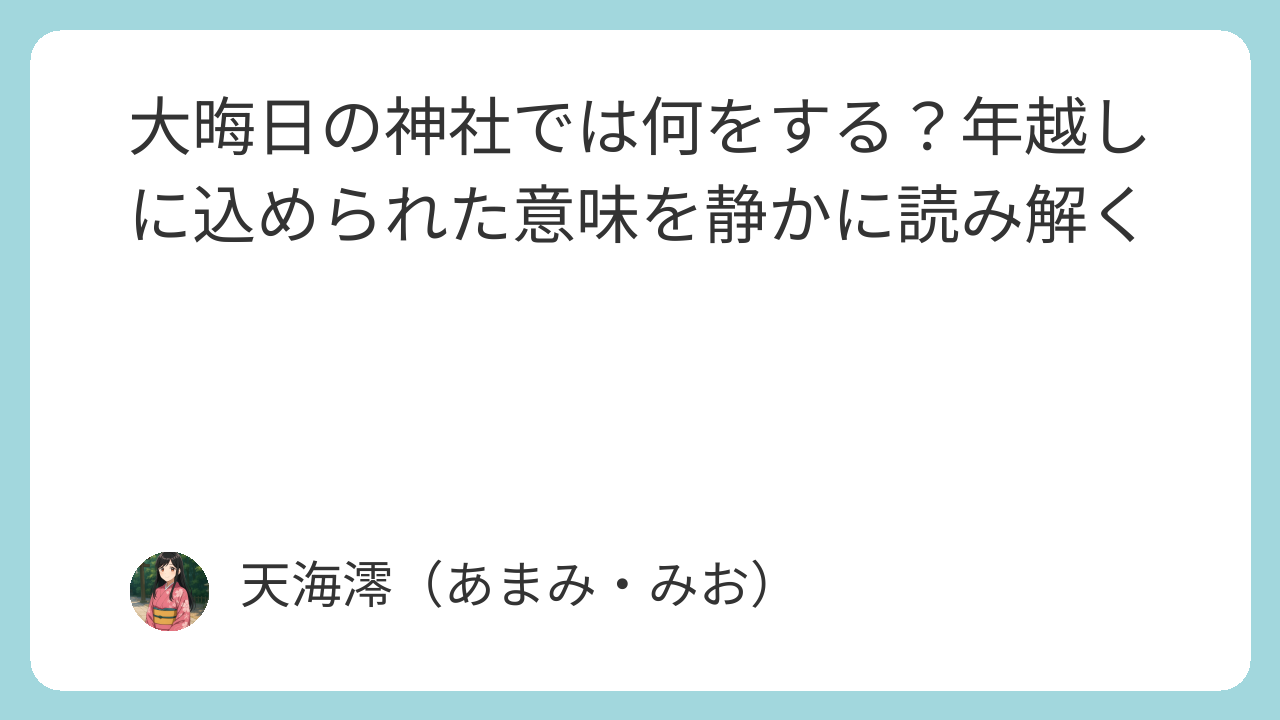 大晦日の神社は、未来を強く願う場所ではなく、今の自分をそっと元に戻す場所です。